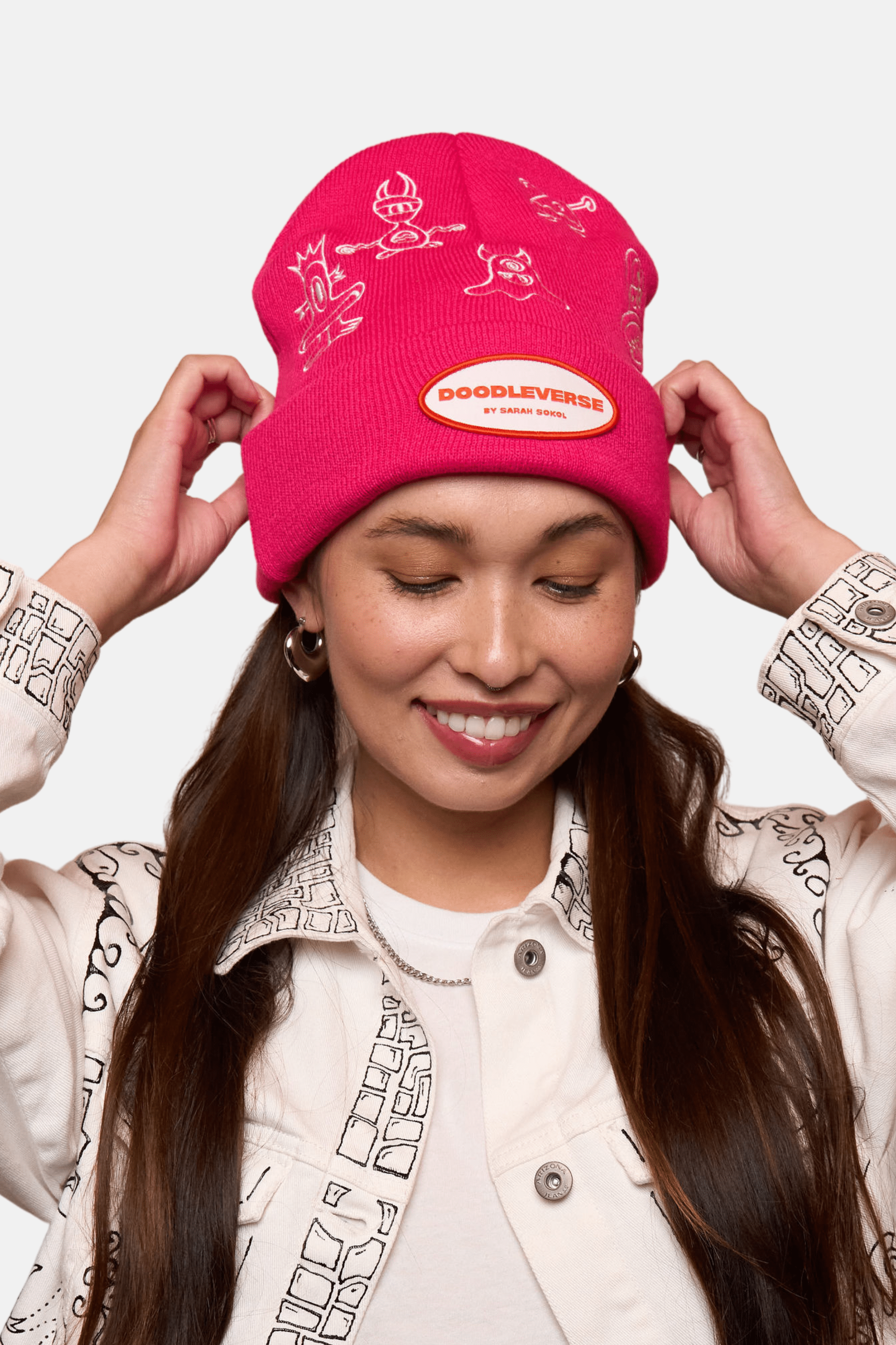 Add a pop of color and fun to chilly days with the Fuchsia Doodle Beanie! Featuring fresh, cheerful doodles, this cozy hat keeps you warm while showcasing your playful style. Perfect for brightening up any outfit and spreading good vibes wherever you go.